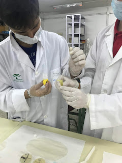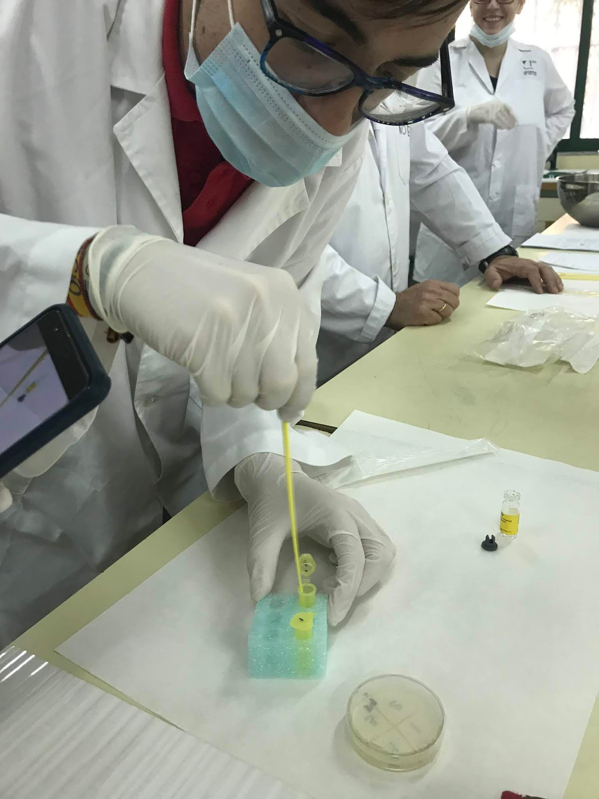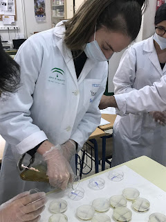Mientras tanto se prepara la Arabinosa, con la solución de transformación y la ampicilina, antibiótico necesraio para controlar si se ha producido la transformación, al igual que la arabinosa es necesaria para que se pueda expresar el gen que se va a transformar.