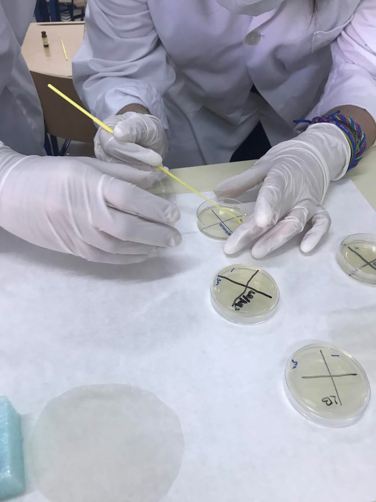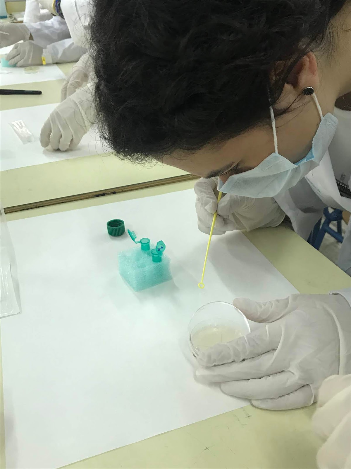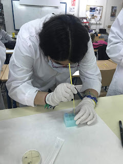 Y posteriormente se coge el plásmido con el asa estéril y se coloca en el tubo eppendorf (+):