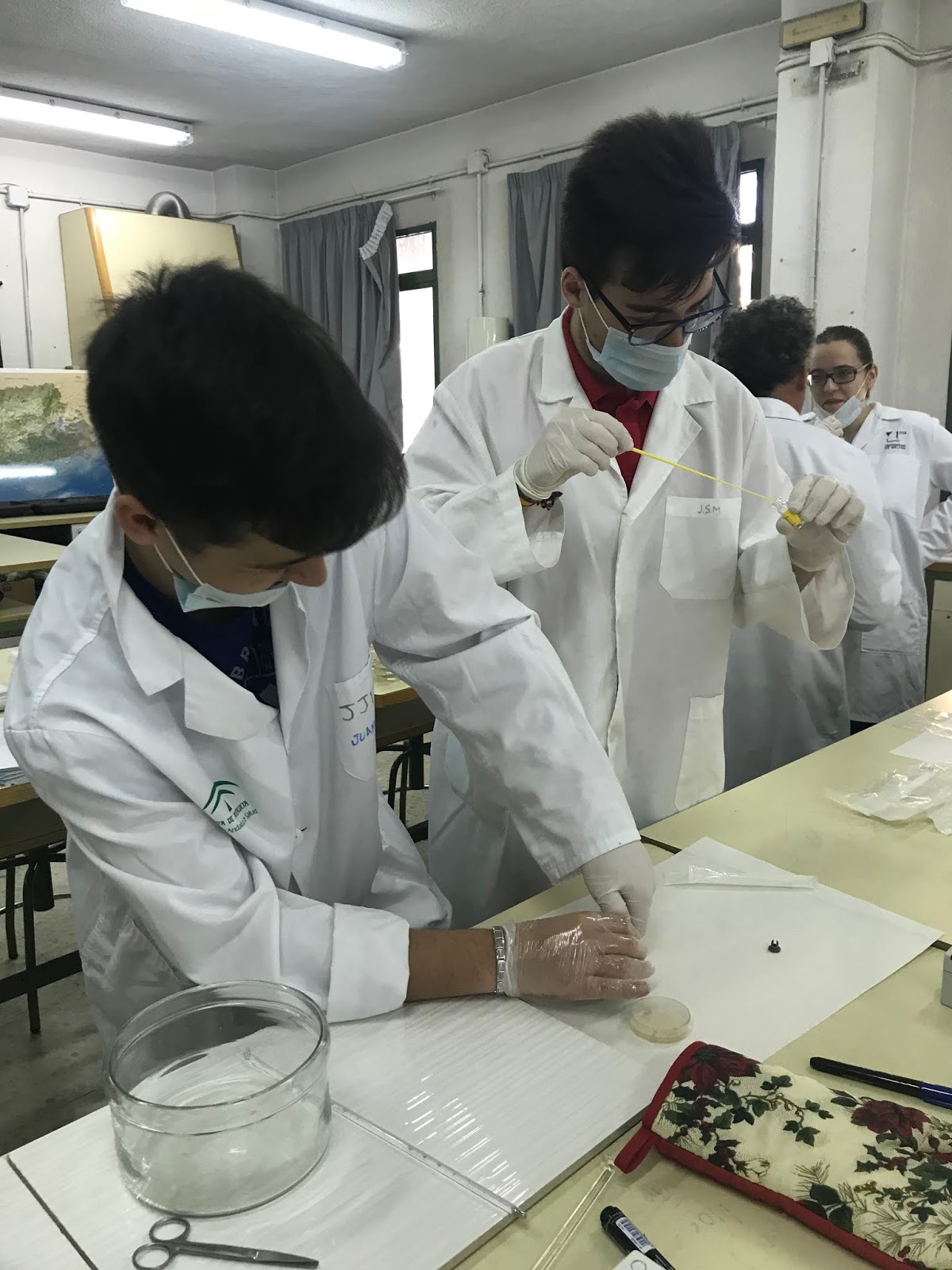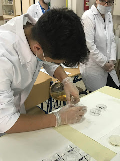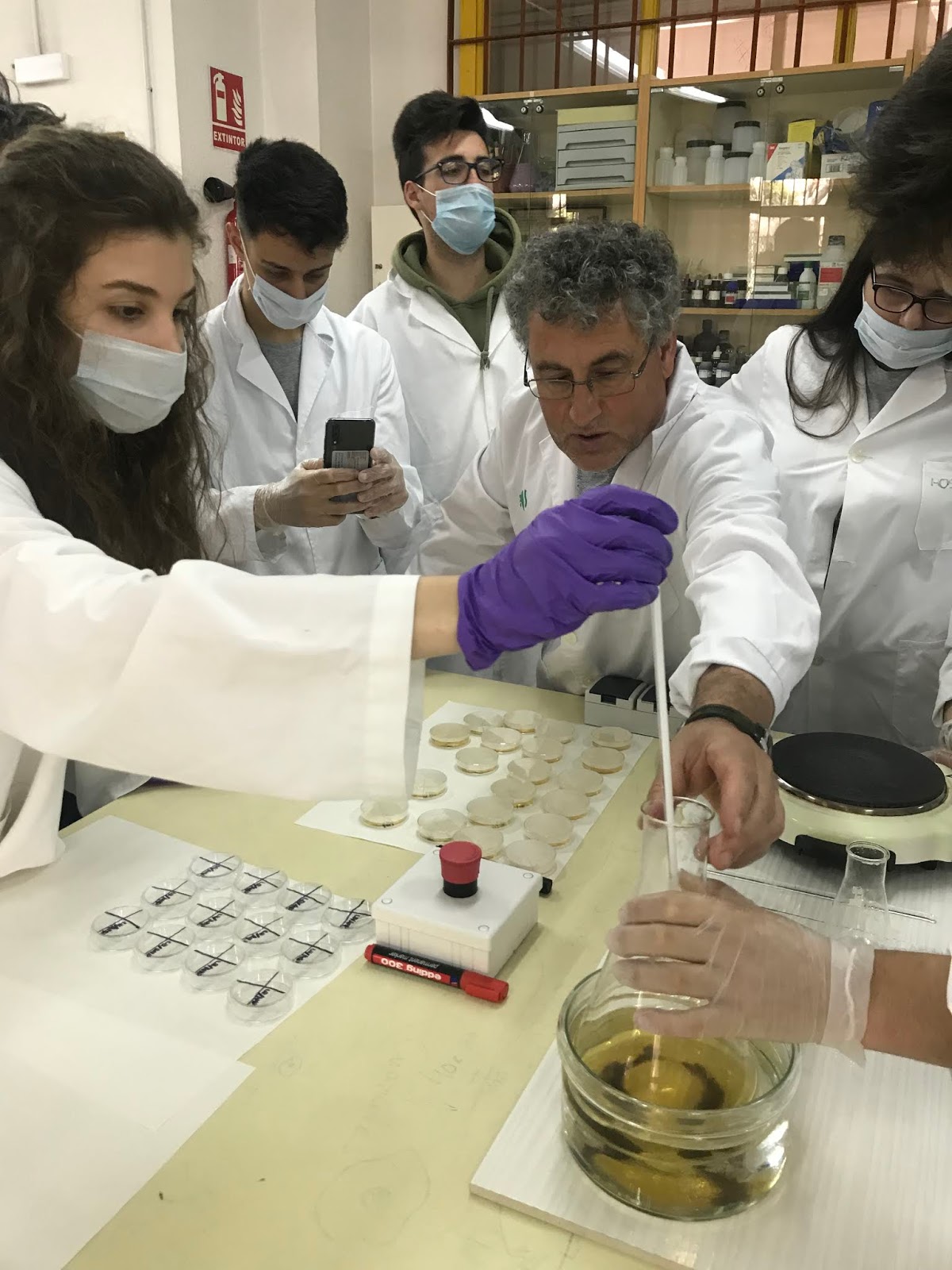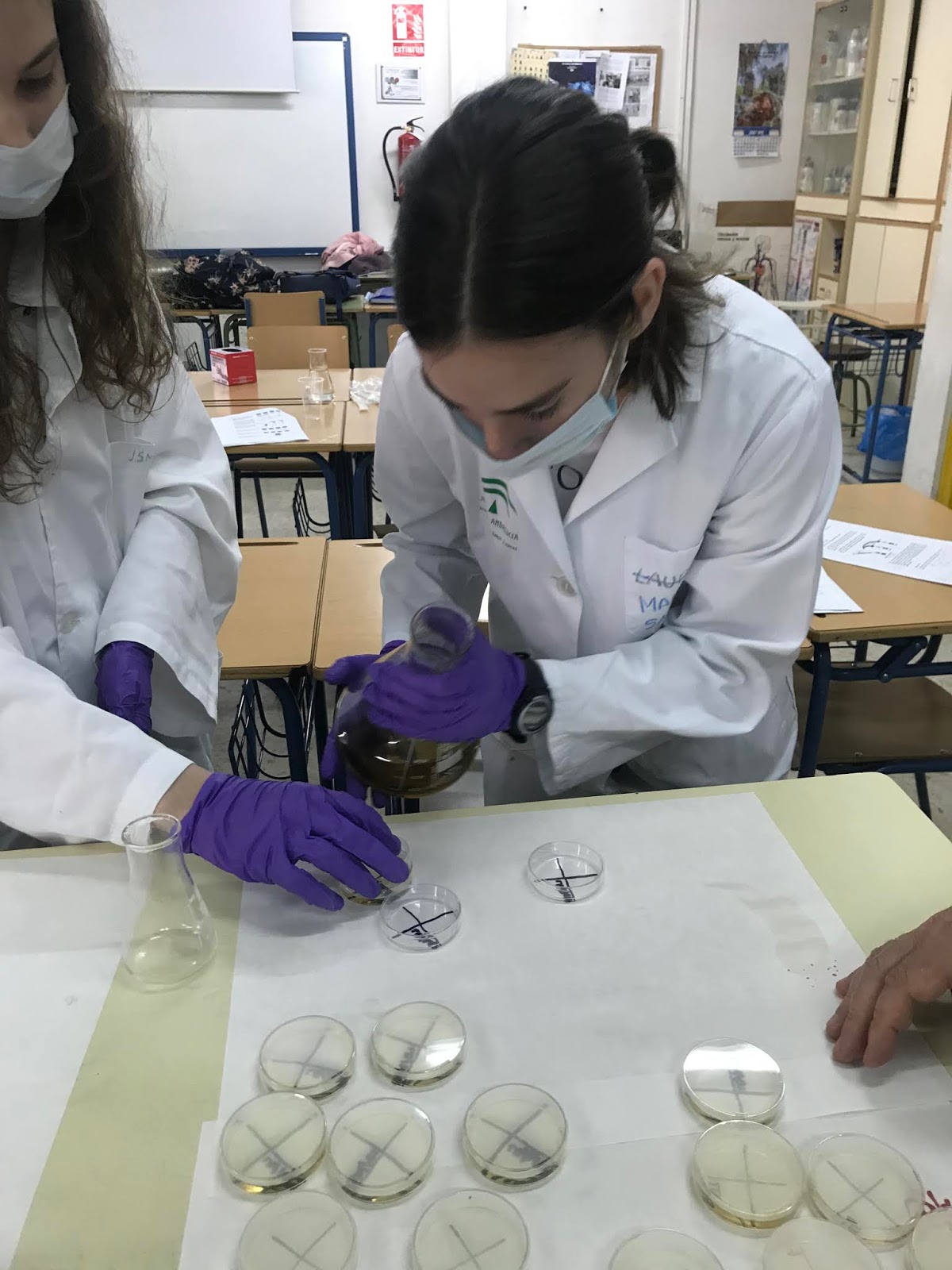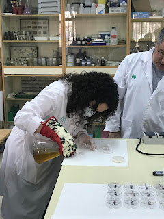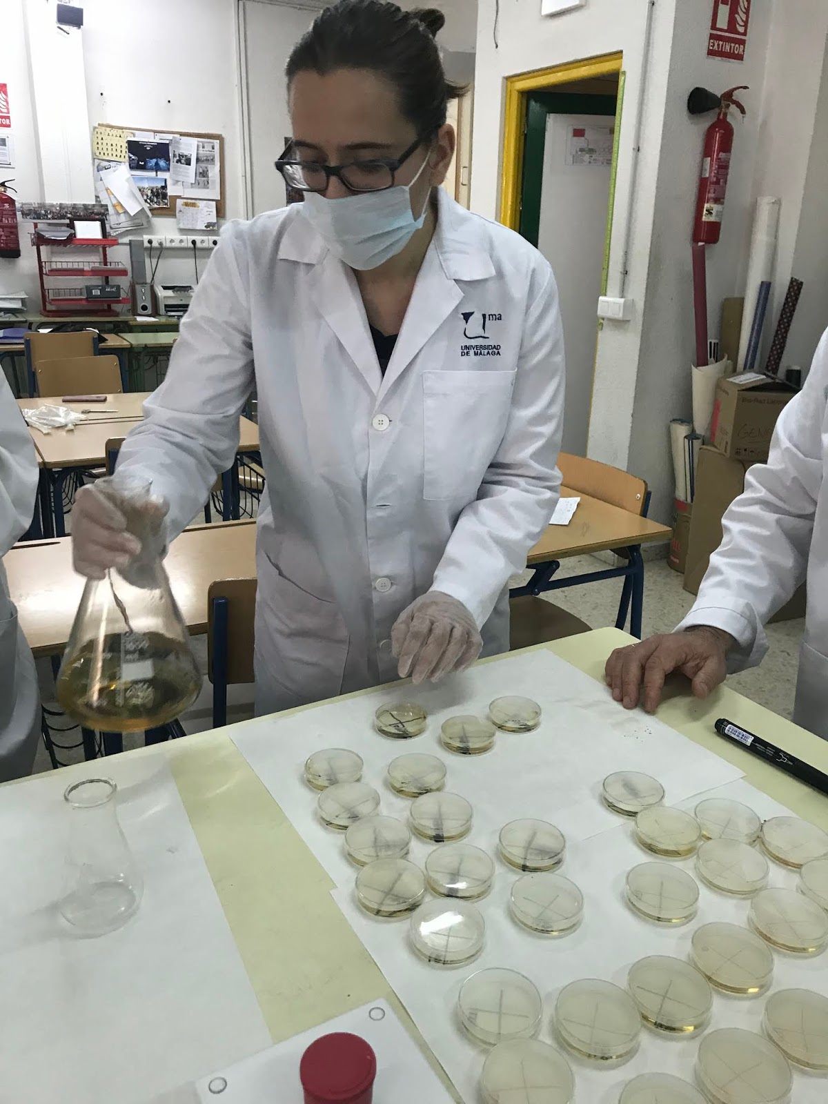 Posteriormente se aporta el antibiótico. Comenzamos a echar el LB Agar/ampicilina: