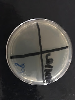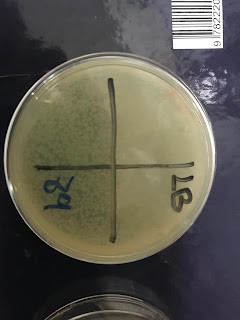 Vemos que nos han crecido E. coli, que se caracteriza por presentar colonias de color crema, redondas y de bordes lisos.