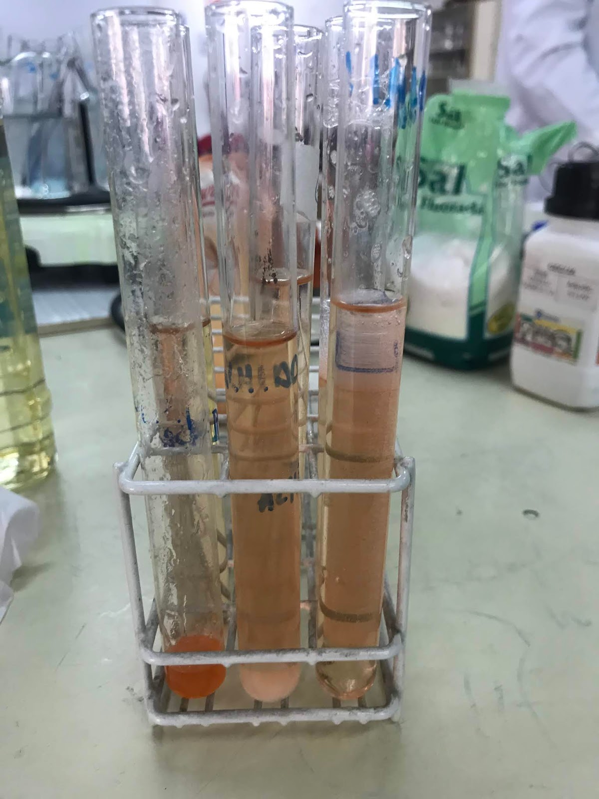 - El reactivo de Sudan III nos determinará la presencia de lípidos virando color Rojo Ladrillo.