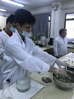 - El Jamón serrano reacciona con el reactivo de SUDAN III (Vira a color Rojo Ladillo) por su contenido en lípidos.