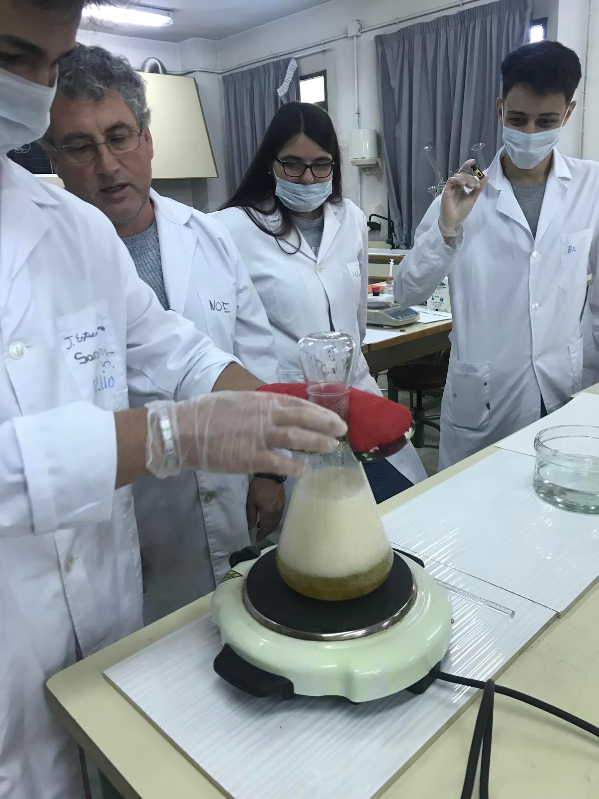 Asegurándonos de que se encuentre los tubos en el agua caliente.