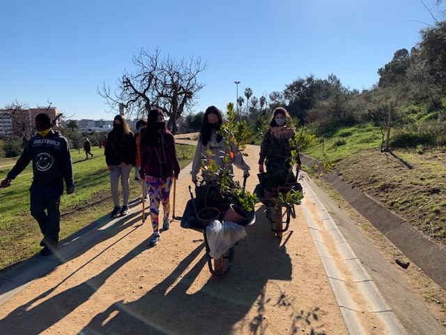 Los alumnos de Primero de ESO del  IES San Sebastián, que participan en el Proyecto ERASMUS + KA 229: TOGETHER, INVESTIGATE AND LEARN, TO TACKLE CLIMATE ISSUES (TILT) y del Programa de innovación de ALDEA, han realizado una reforestación  en el Parque Moret, que ha sido organizada  por del Aula de la Naturaleza de dicho Parque, dentro del Programa de PLANTA- BOSQUE (Concejalía de Políticas Sociales e Igualdad del Ayuntamiento de Huelva).