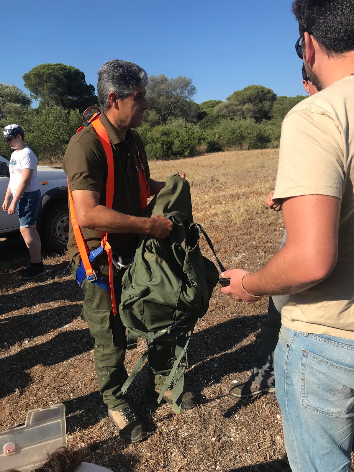 Mientras se va a por los pollos, se prepara el material necesario para anillarlo, tallarlo, pesarlo y sacarle sangre: