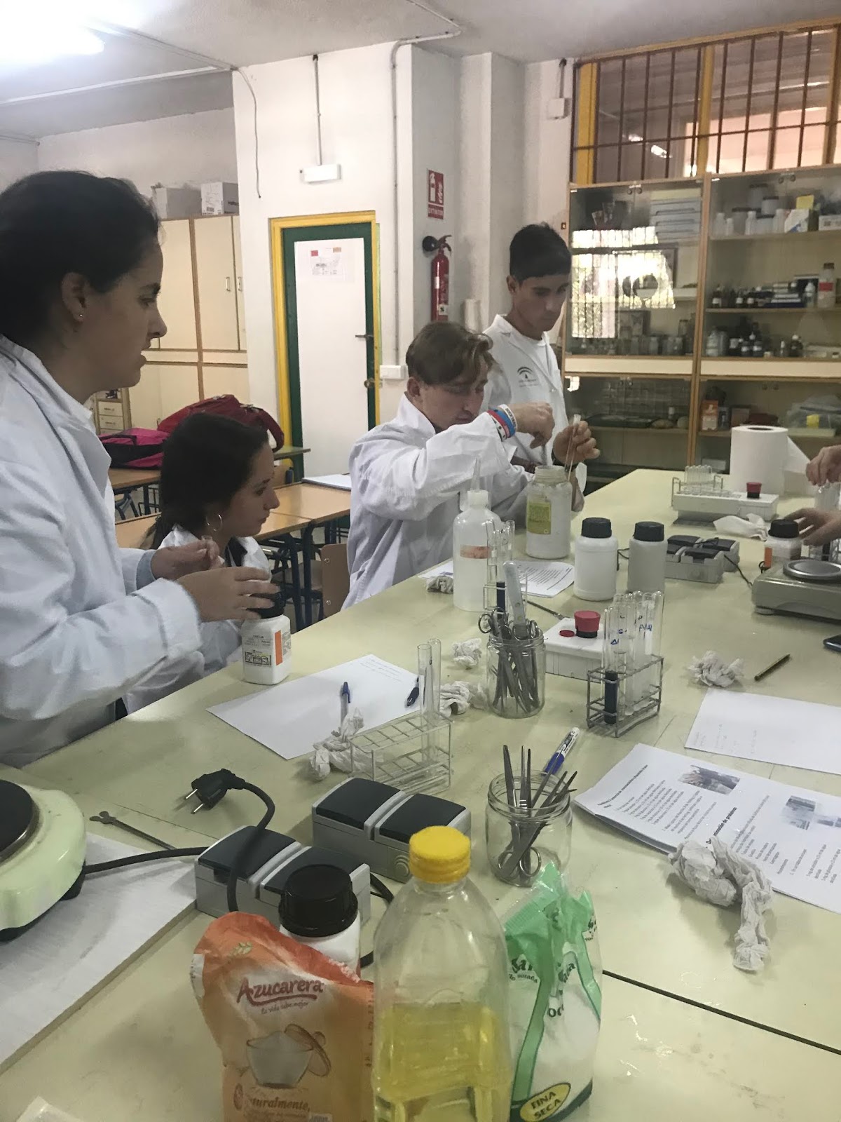 Antes de echar el aceite se hace la disolución del agua con Na OH: